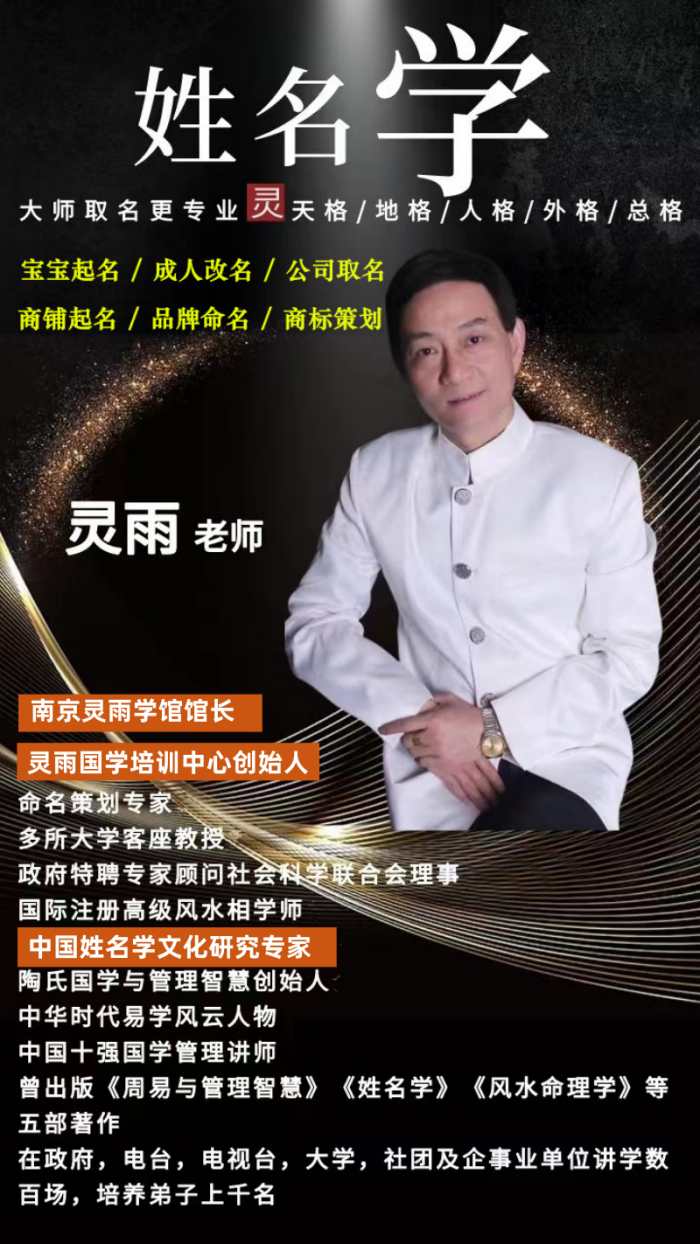 南京宝妈优选:中国姓名学文化传承人灵雨大师易经八字风水起名定制服务