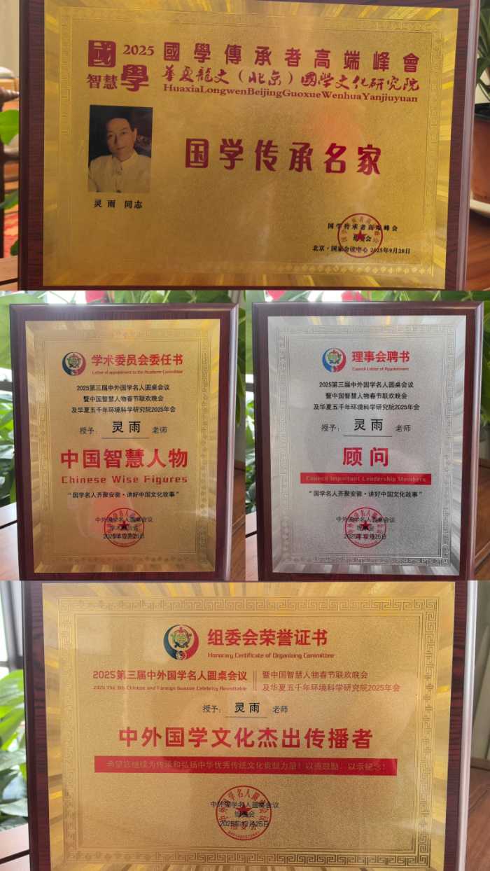 凭借着卓越的专业能力和深厚的文化底蕴,灵雨老师收获了无数的荣誉与赞誉。他荣膺国际顶级风水师、全球风水规划泰斗级专家、中国风水界一代宗师、中国建筑环境风水评估权威、中国十强风水师、国学文化传承名家、中外国学文化杰出传播者、中国易经风水领航人物等众多权威头衔。这些头衔不仅是对他个人成就的高度认可,更是他在风水领域卓越地位的生动彰显。
